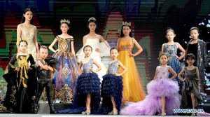 Varios niños presentan diferentes creaciones de moda durante un concurso modelo para niños en Qingdao, provincia de Shandong, celebrado el pasado 19 de julio de